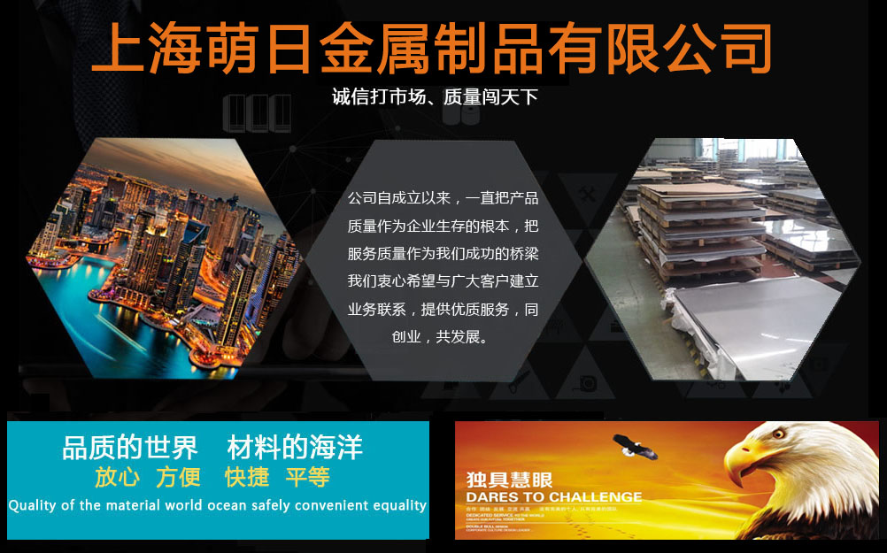 上海萌日金屬制品有限公司一直致力于為國內(nèi)各大中型國有企業(yè),外資企業(yè),民營獨資企業(yè),模具制造企業(yè),機(jī)械加工企業(yè),石油化工企業(yè)及器械企業(yè)等供應(yīng)各種特種鋼材,進(jìn)口/國產(chǎn)鋁合金,不銹鋼,合金結(jié)構(gòu)鋼,42CrMo鋼板,35CrMo鋼板,40Cr鋼板,合金圓鋼,中厚板,鍛件,法蘭,鋼帶,軸承鋼,易切鋼,不銹圓鋼,合金管,矩形鋁管,無縫鋁管,鋁管,工業(yè)鋁管進(jìn)口及國產(chǎn)方胚/鋼錠/鋁錠,應(yīng)用于機(jī)械,機(jī)電,造船,工程,煤礦,紡織,電力,鍋爐, 汽車工業(yè)等各個領(lǐng)域。我公司可以根據(jù)客戶對特殊材料的要求進(jìn)行材料和產(chǎn)品的定制,可按ISO,ANSI,JIS,DIN,GB等標(biāo)準(zhǔn)定制,我們將本著"誠實守信,合作共贏,長期合作"的理念與新老客戶一起進(jìn)步發(fā)展。